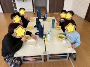 午前中は昼食クッキングで「おにぎり&豚汁」を作りました!