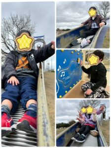 鬼ごっこをしたり、かくれんぼをしたり、広いグラウンドでボール遊びをして、沢山身体を動かしました☺