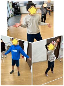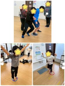 音楽が鳴っている間は動いて、止まったら、近くにある輪っかに指定されたポーズで止まります!