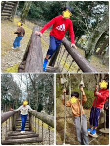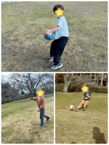 その後は、広い芝生でサッカーやドッジボール、野球をして遊んだり、木のアスレチックに挑戦しました🌳