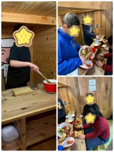 部屋全部が篠山の木でできた大きなおもちゃ!キッチンがあったり、滑り台があったり、秘密基地のような場所で思う存分遊びました☺