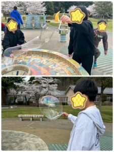 大きなしゃぼん玉が作れる場所でみんなでしゃぼん玉チャレンジ!