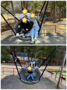 大きなブランコにお友達や先生と一緒に乗ったり…