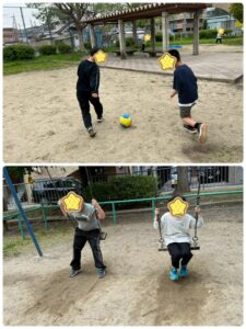 いつもより長い時間いけたので、サッカーブランコ滑り台鬼ごっこなど色々なことをしました!