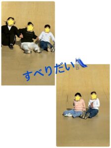 幅の広い滑り台を先生やお友達と列になって…