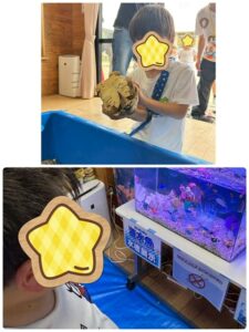 亀を触ったり、ドクターフィッシュの水槽に手を入れたり…ドキドキの体験が出来ました☆
